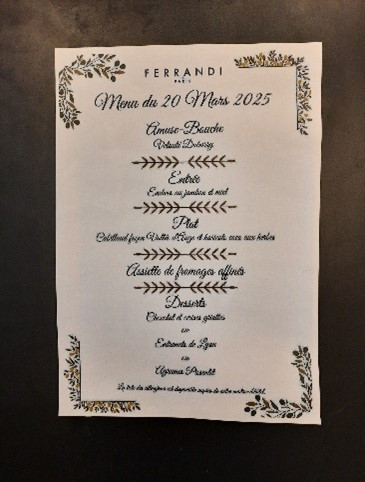 Déjeuner gastronomique au restaurant Ferrandi Le Premier du 20 mars 2025