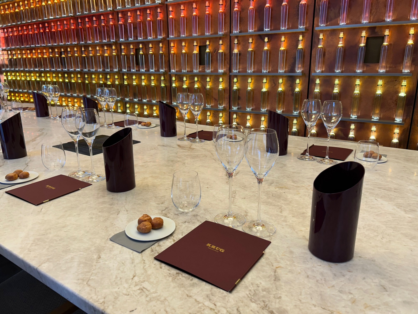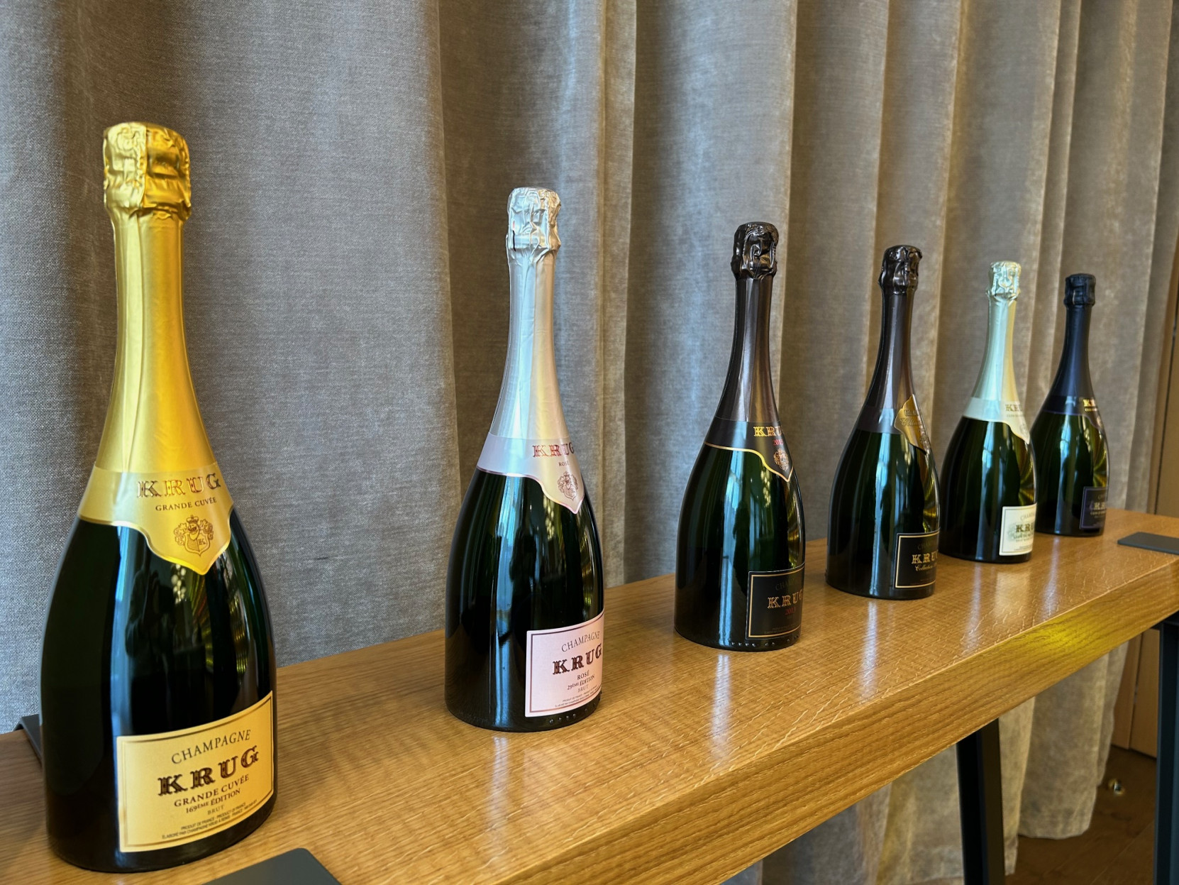 Après une visite des caves, nous nous retrouvons dans la salle de dégustation pour vivre le clou de l’expérience : une dégustation généreuse de Krug Grande cuvée 169è édition et du millésime 2013 qui termine par une évocation en musique du caractère propre à quelques parcelles et nous quittons nos hôtes avec la conviction d’avoir vécu un moment inoubliable.